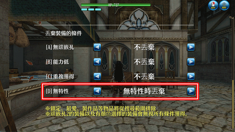 ・道具的自動丟棄選項中新增「特性」相關的項目。