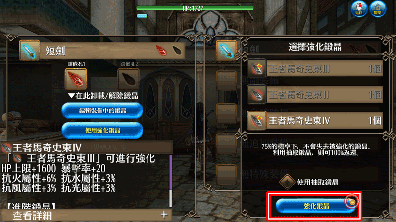 強化鍛晶」,將會自動包含中間強化用的鍛晶,一次性完成裝備。