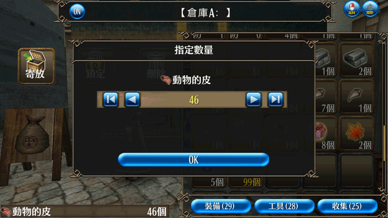 有關道具倉庫的詳細資訊,請參閱「