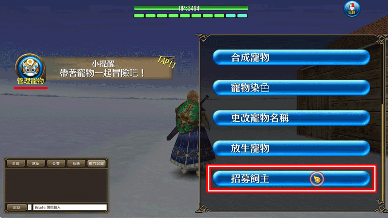 玩家可用以下方法收服寵物。