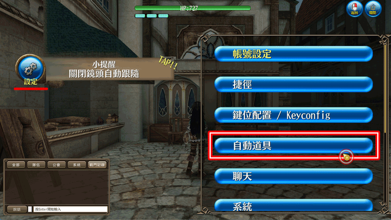 設定 > 自動道具]來設定自動丟棄道具。