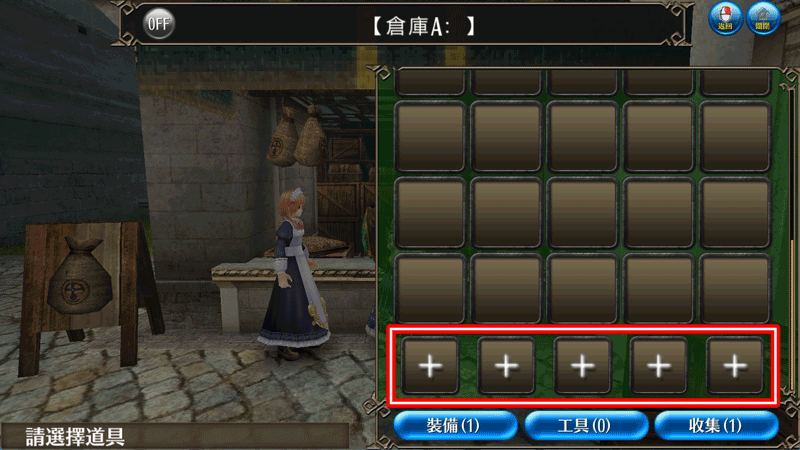 倉庫」,亦可使用道具倉庫。