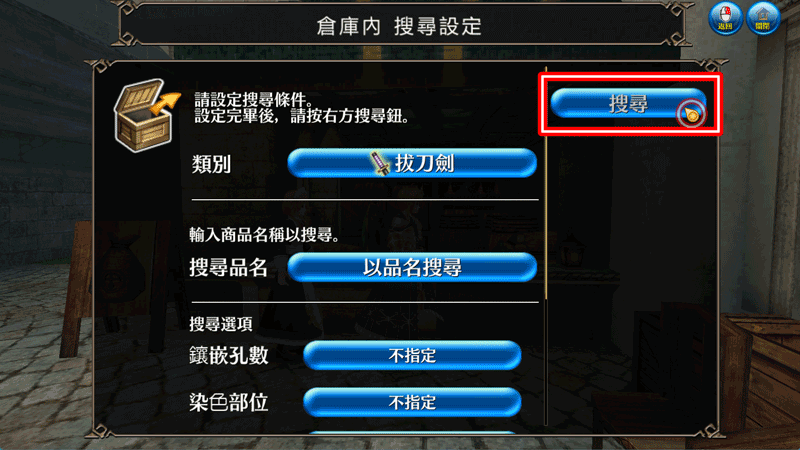※鎖定、最愛、製作品等物品將從搜尋範圍排除。